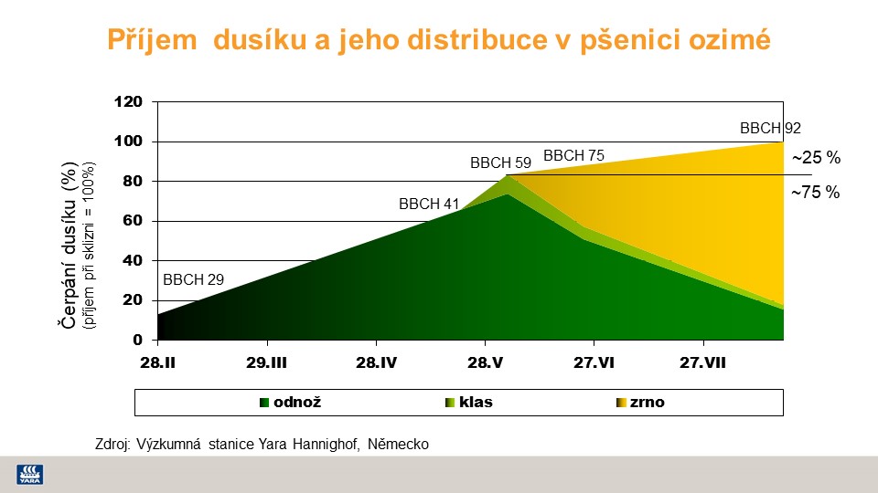 Většina z plodinou nevyužitého dusíku zůstává v půdě, další ztráty mohou jít na vrub plynných ztrát nebo vyplavení. Proto nedoporučujeme při snížených celkových dávkách dusíku se orientovat na močovinový nebo čistě amoniakální dusík a dodat například v této formě 2/3 celkové potřeby dusíku v regenerační dávce.