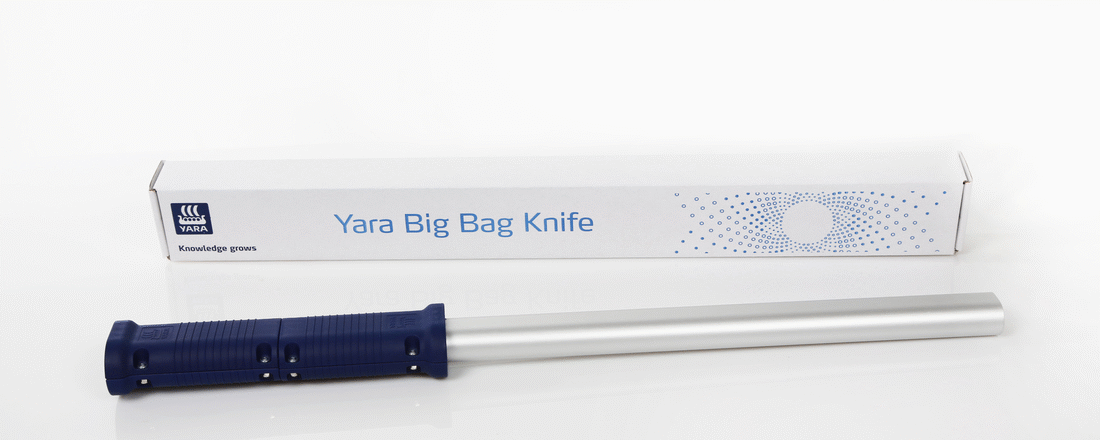 Nůž Yara Big Bag Knife je nůž vyvinutý speciálně pro řezání velkoobjemových vaků. Teleskopická rukojeť umožňuje rozříznout díru ve spodní části big bagu, zatímco stojíte v bezpečné vzdálenosti, aniž by se obsluha musela pohybovat pod zavěšeným big bagem.